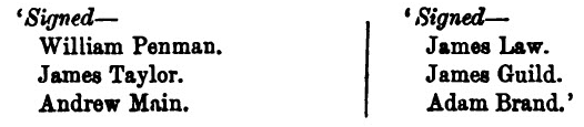 Campbell, of Dollarbeg; John Duncanson, of Sheardale; William Fult, of
