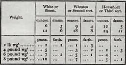 WIEGHT OF BREAD, &c.—For some time previous to this year many complaints had been sent to the Magistrates regarding the light weight of bread; on June 17th, 1745, the Magistrates and council issued the following Table of Weights and Prices:--