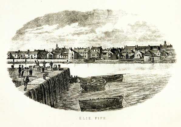 The Parish, as already mentioned, was erected by Parliament in 1641. Altogether it contains fully 2241 acres, including 210k of foreshore; but as Scott’s lands were not all contiguous, 650 acres are detached from the rest. Population, Public Buildings, &c.—In 1755 the population of the parish was only 642, and in 1790 it had decreased to 620. In 1831 the inhabitants had increased to 1029, but in 1881 they had sunk to 670. At the latter date there were 625 people in the town, of whom 79 were in Kilconquhar parish. In Elie, there are two hotels, a branch of the National Bank, a Savings’ Bank, a Post and Telegraph Office, and a gas-work. The Free Church, which is dated 1844, is a peculiar looking building. In 1795, Pairman wrote:- “There are a few Seceders, Independents, and Bereans; but the great body of the people belong to the Established Church. The stipend of Ely is £80 old stipend, and £20 lately given voluntarily by Sir John Anstruther—in all £100. The schoolmaster’s salary is £11.” The valuation of the parish in 1855-6 was £5053 18s. It has gradually risen until it has now reached £7333 12s. In 1836, Dr Milligan said :—“There are no antiqui­ties in the parish, nor yet any modern buildings worthy of notice:" but, “it has often been remarked by strangers that on Sundays the church, from the cleanliness of the people, and in many instances the handsomeness of their dresses, presents much of the appearance of a city congrega­tion.” At that time, there was no Dissenting Church in the parish, and not more than 15 of the parishioners were members of Dissenting Churches; but these were “divided among perhaps half a dozen different sects.” Under the head of “eminent persons,” Dr Milligan stated:- This is a production in which the parish does not appear to be very prolific.” Since that time his own eldest son has risen to great eminence in the Church, but he was not born in Elie. In the very year, however, in which he wrote, a most dis­tinguished native rested from his labours. Few men have done more for the safety of their fellows than James Hors­burgh, the self-taught and enthusiastic hydrographer, who was born at Elie in 1762, who died in 1836, and was buried here.