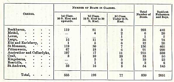 Fishing.—As there was a dispute between the Abbot of Dryburgh and the Prior of May in 1225, concerning the teind of the fish landed in the Dreel Burn, there must have been fishing in the district for more than six cen­turies; but, like other industries, it has had many ups and downs during that time. On the 22d of March 1661, Parliament considered a supplication from East Anstruther and Pittenweem, in the same terms as that from Crail and Kilrenny (see page 5), and similar liberty was granted. In both cases it was to endure until the first of January 1662.