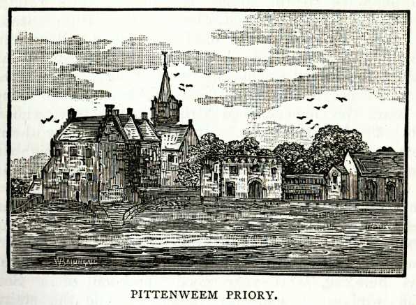 History of the Priory.—As has been already men­tioned (see p. 22), David the First gave the manor of Pittenweem to the. monks of May, and here they probably built in his days a religious house. The Prior of Pitten­wee m is first mentioned in a charter about 1221, that is, 68 years after David’s death. And the merk, which the monks of May agreed in 1225 to pay yearly to Dryburgh Abbey, is mentioned about 1300 as payable by the Prior of Pittenweem. When the Priory of May was transferred to the canons of St Andrews in 1318, they obtained the rights of their predecessors to Pittenweem, and the island monastery was deserted for this seat on the mainland. In 1452, James the Second erected certain lands of the Priory of Pittenweem into a free regality. When Pope Sixtus the Fourth made the Church of St Andrews a metropolitan see in 1472, he annexed the Priory of Pitten­weem or May, for ever, as a mensal possession of the Arch­bishops of St Andrews; Patrick Graham, the first and un­fortunate Archbishop, having “represented to him that the Priory of Pittenweem was not conventual, but only a small cell or chapel of the Church of St Andrews, whose annual revenues did not exceed a hundred pounds ster­ling.” On Parliament ratifying, in 1479, all annexations of benefices by the Pope in favour of that see, Walter Davidson, the Prior of Pittenweem, protested that this ratification should be no prejudice to him, or the Priory during his time, and to this the Archbishop agreed. It is questionable if the annexation to the see of St Andrews was ever acted on. John Rowle, at anyrate, disposed of the patrimony of the Priory, “without reference to the Archbishop of St Andrews, and simply with consent of the Priors of St Andrews, to whom the house of May had always been subject since its re-acquisition from the monks of Reading.” The lands, which had been in the possession of the Priory of May for nigh four centuries, were nearly all alienated during Rowle’s administration. “The deeds by which he effected this,” says Dr Stuart, “are recorded in a chartulary now in the charter-room at Elie House. They commence in 1532, and bear to be granted by ‘John, Prior of the monastery of Pittenweem and convent there­of with consent of Patrick, Prior of the metropolitan church of St Andrews.’ In 1540, the style is, ‘with consent of James, perpetual Commendator of St Andrews and con­vent thereof,’ and the seals of both monasteries are affixed to the deeds. At times, the deeds bear to be granted with consent of the chapter of St Andrews, as ‘superiors of Pittenweem in that part.’” Wood supposed that Rowie was one of the early favourers of the Reformation, but in this he was mightily mistaken. Mr Cook knew more about him when he said that “he was no friend to that great movement.” Melvil of Halhill and Kirkcaldy of Grange both spake of this Prior of Pittenweem as a vile sensualist, and their opinion is known to have been only too well founded. A favourer of the Reformation! “In 1543, he granted to William Dischintoun of Ardross a charter of the lands of Grangemuir, which sets forth the many benefits conferred by him on the convent, and then indicates that was expected of him amid the ‘Luthe­ran heresies and the corruptions of the time.'" It was either the Prior or a contemporary of the same name—a poet and a priest—who wrote a metrical cursing of 278 lines against those who robbed his poultry-yard and garden, and of which a copy will be found in Laing’s Select Remains of the Ancient Poetry of Scotland. Trusting to a passage in Dunbar, Laing thought the author must either have been Rowle of Aberdeen, or Rowle of Cor­storphine; but for aught that is known it may have been that Rowle who became Prior of Pittenweem. As the following specimen shows, the cursing is very vigor­ous :—