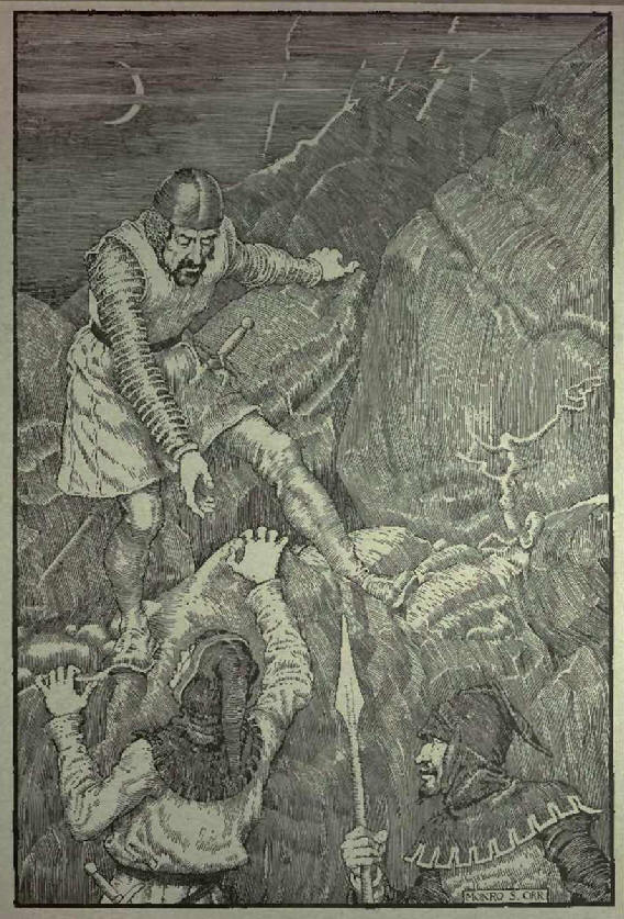 On a dark and stormy night (the 14th of March 1312) Randolph, under the guidance of Frank, led thirty brave men up the steep part of the Great Rock which overhangs Princes Street Gardens, below which is the ruin of the Well-house Tower. At midnight they scaled the walls, surprised the garrison, and after a fierce fight overpowered them.