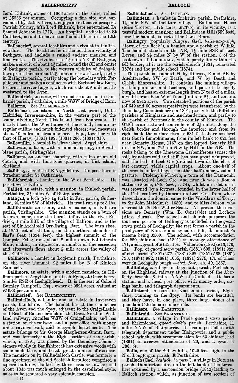 Ballindalloch, Ballindean, Ballingry, Ballinluig, Ballintomb, Ballintore,