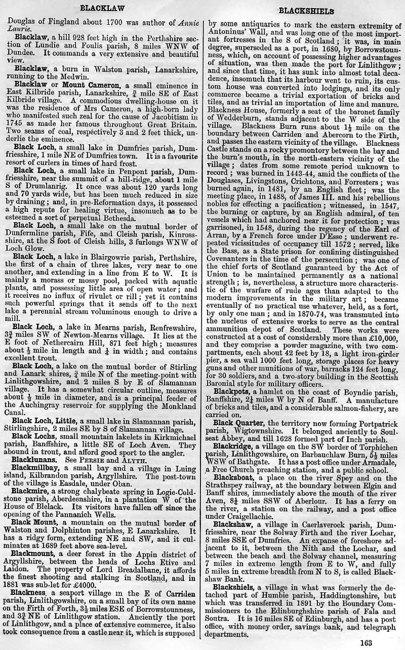 Black Quarter, Blackridge, Blacksboat, Blackshaw, Blackshiels |
