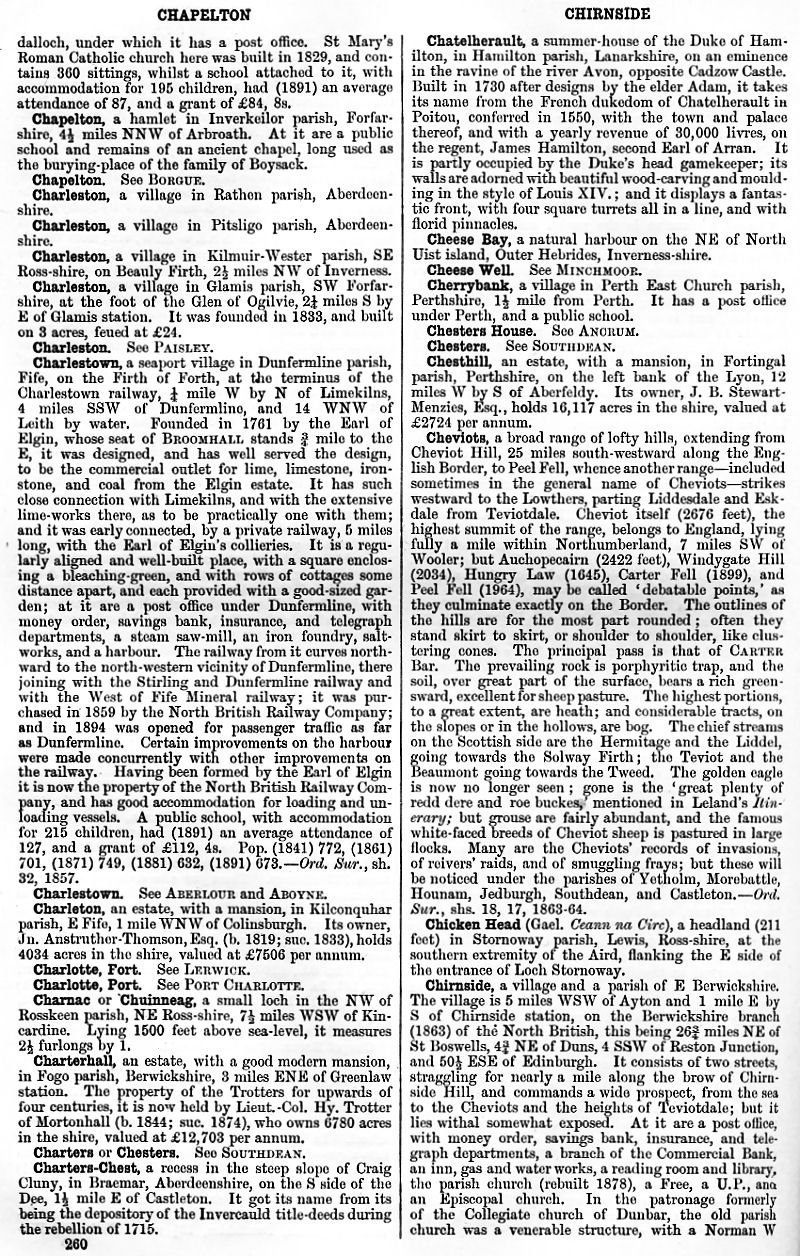 Charterhall, Charters or Chesters, Charters-Chest, Chatelherault, Cheese