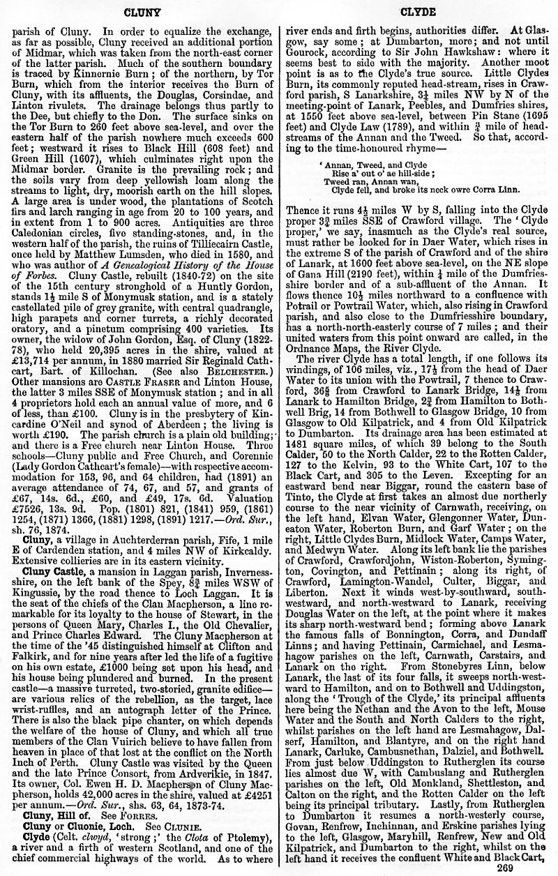 Cluny, Cluny Castle, Hill of Cluny, Cluny or Loch Cluonie, Clyde