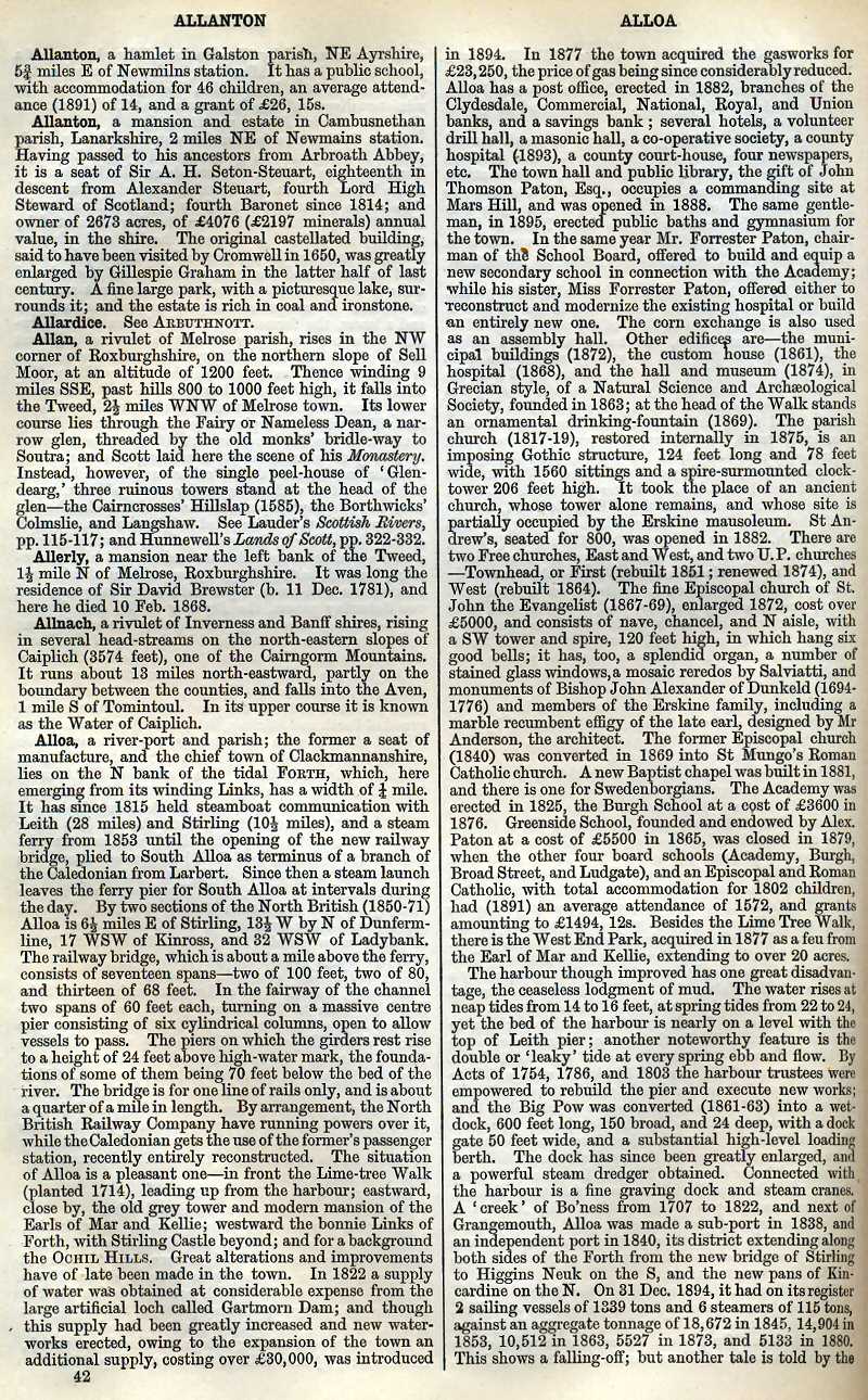 Allanton, Allardice, Allan, Allerly, Allnach, Alloa