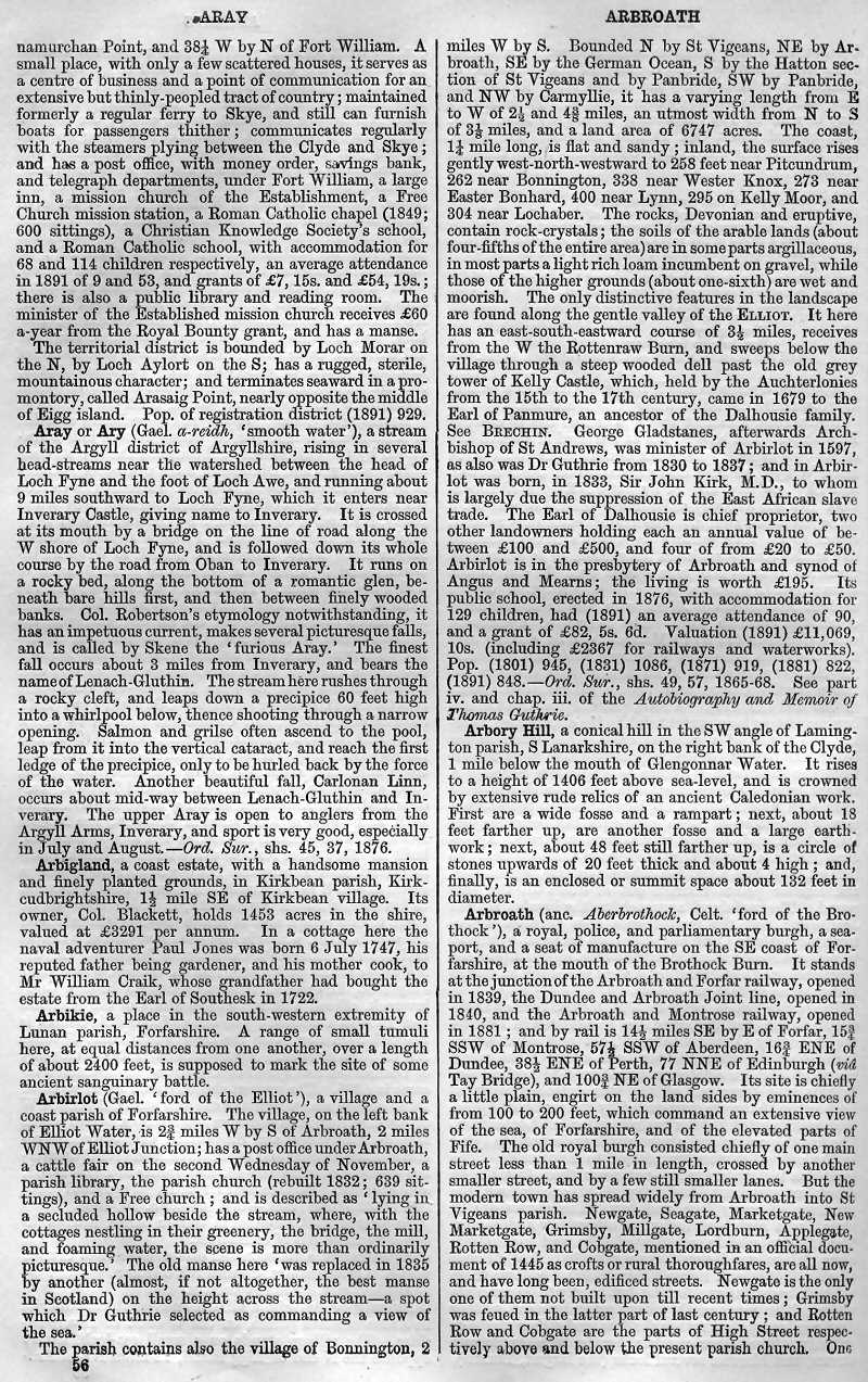 Aray or Ary, Arbigland, Arbikie, Arbirlot, Arbory Hill, Arbroath