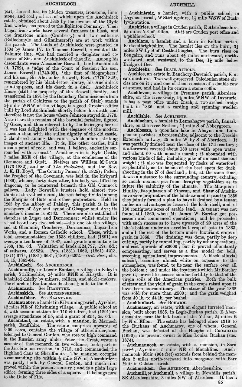 Auchlochan, Auchlossan, Auchlunkart, Auchmacoy, Auchmannoch, Auchmedden,