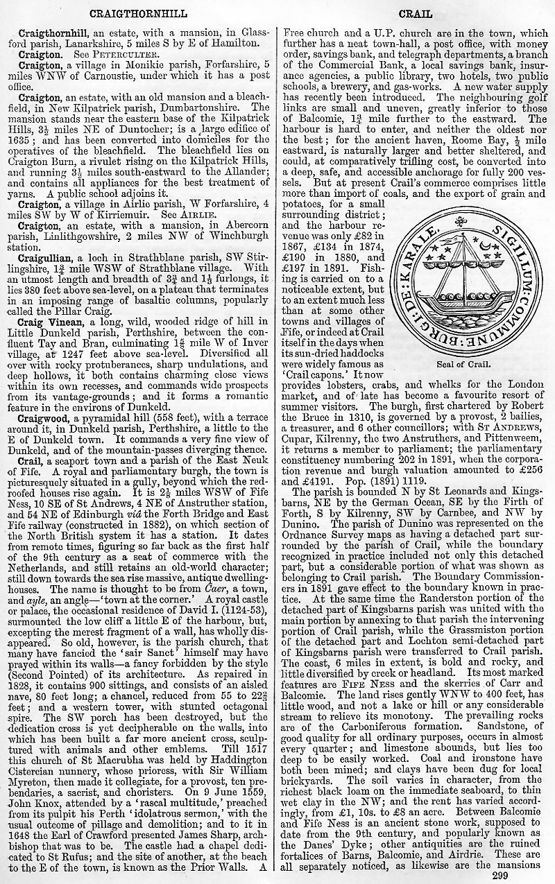 Craigthornhill, Craigton, Craigullian, Craig Vinean, Craigwood, Crail