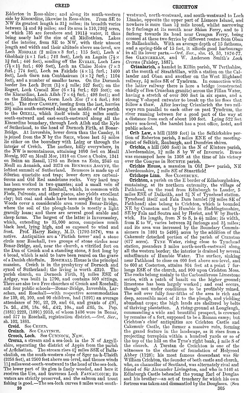 Creid, Creinch, Creoch Loch, Creran, Crianlarich, Crib Law, Crichie, Crichie House, Crichope Linn, Crichton