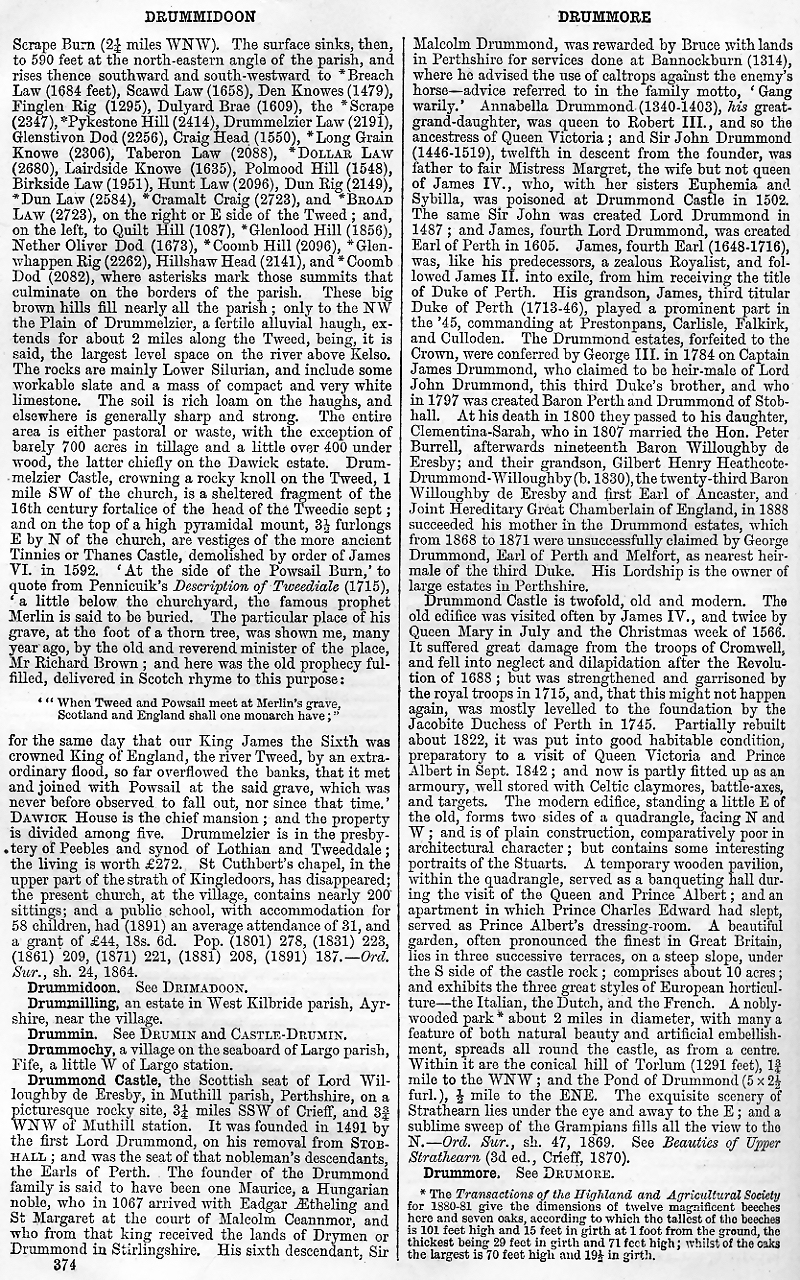 Drummidoon, Drummilling, Drummin, Drummochy, Drummond Castle, Drummore