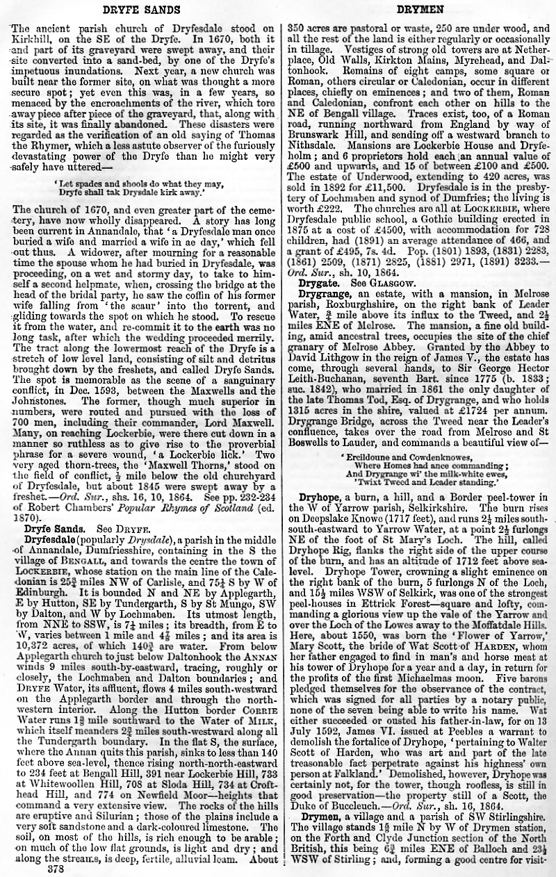 Dryfe Sands, Dryfesdale, Drygate, Drygrange, Dryhope, Drymen