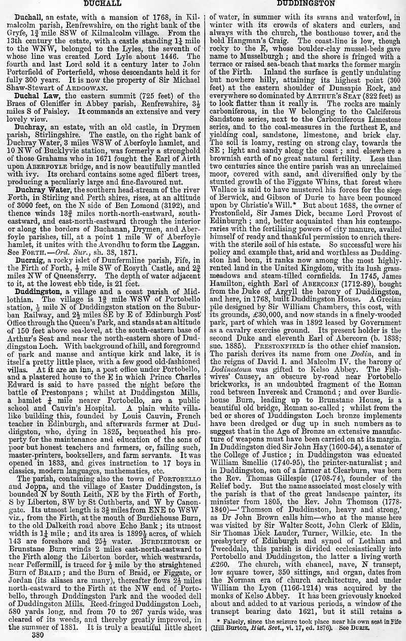 Duchall, Duchal Law, Duchray, Duchray Water, Ducraig, Duddingston
