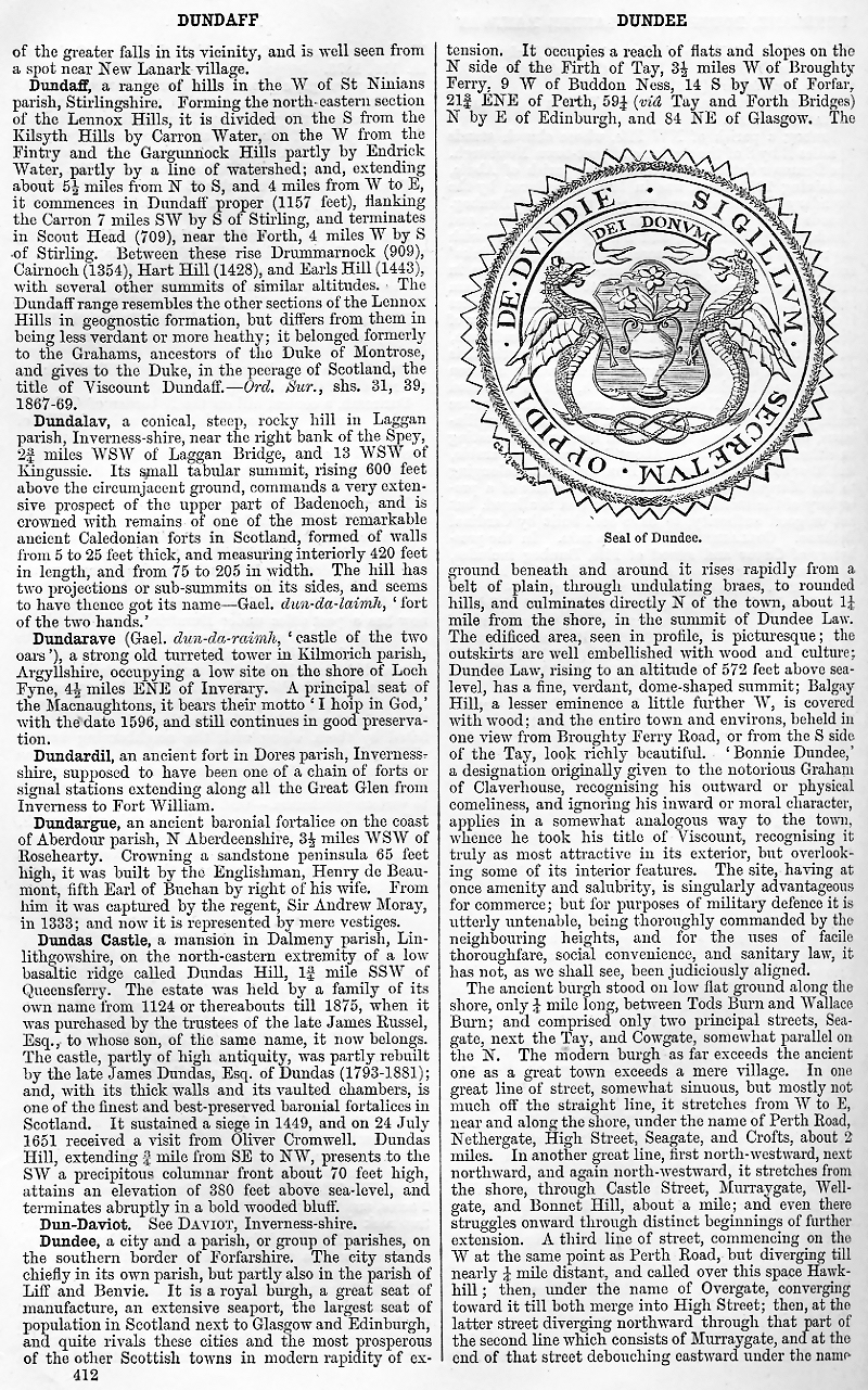 Dundaff, Dundalav, Dundarave, Dundardil, Dundargue, Dundas Castle, Dun-Daviot, Dundee
