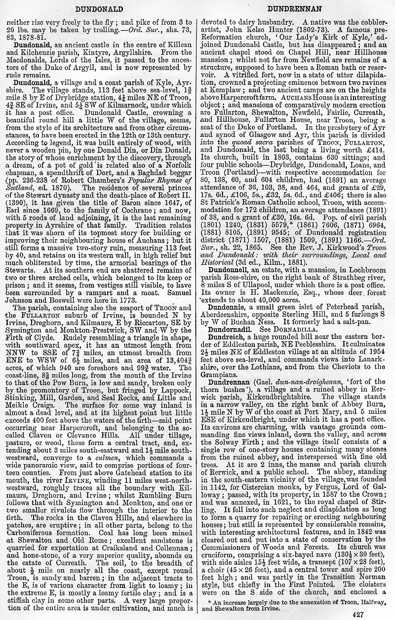 Dundonald, Dundonnell, Dundonnie, Dundornadil, Dundreich, Dundrennan