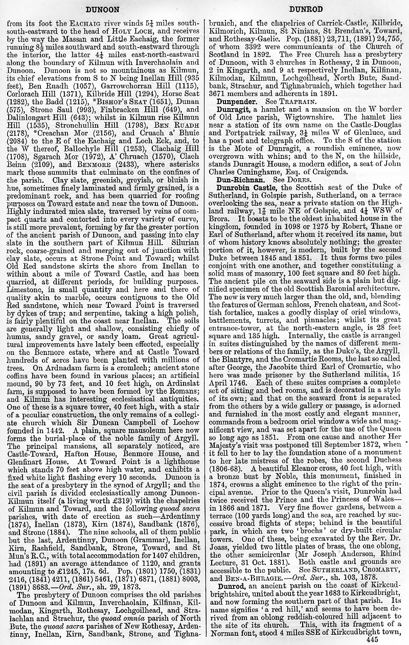 Dunoon, Dunpender, Dunragit, Dun-Richnan, Dunrobin Castle