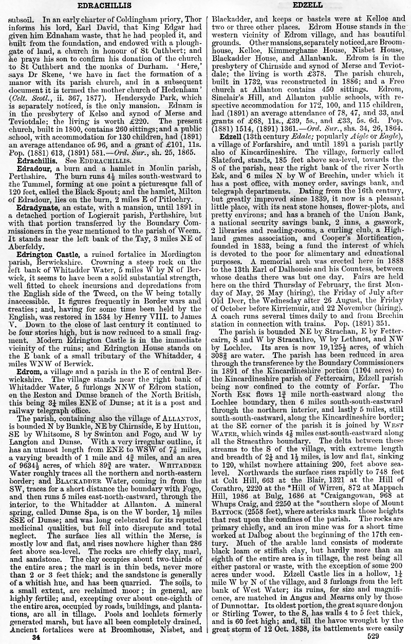 Edrachillis, Edradour, Edradynate, Edrington Castle, Edrom, Edzell