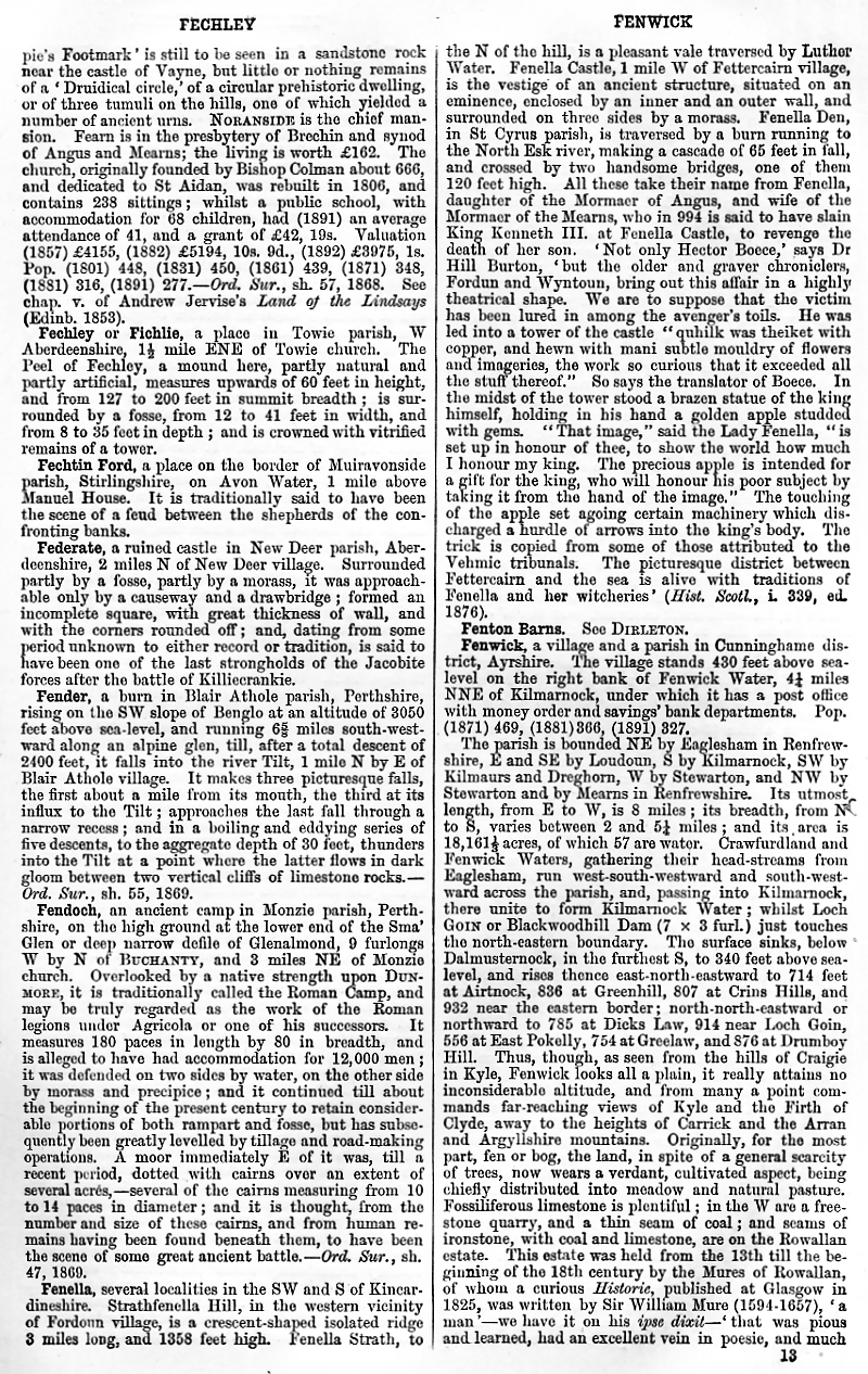 Fechley or Fichlie, Rechtin Ford, Federate, Fender, Fendoch, Fenella, Fenton Barns, Fenwick