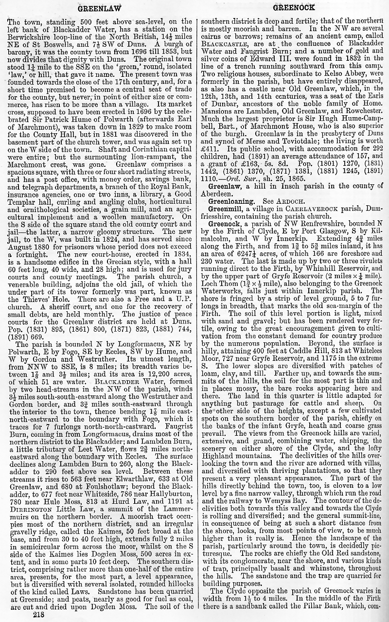 Greenlaw, Greenloaning, Greenmill, Greenock