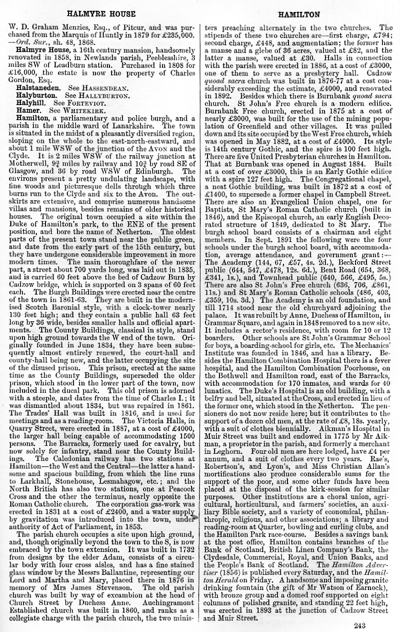 Halmyre House, Halstaneden, Halyburton, Halyhill, Hamer, Hamilton