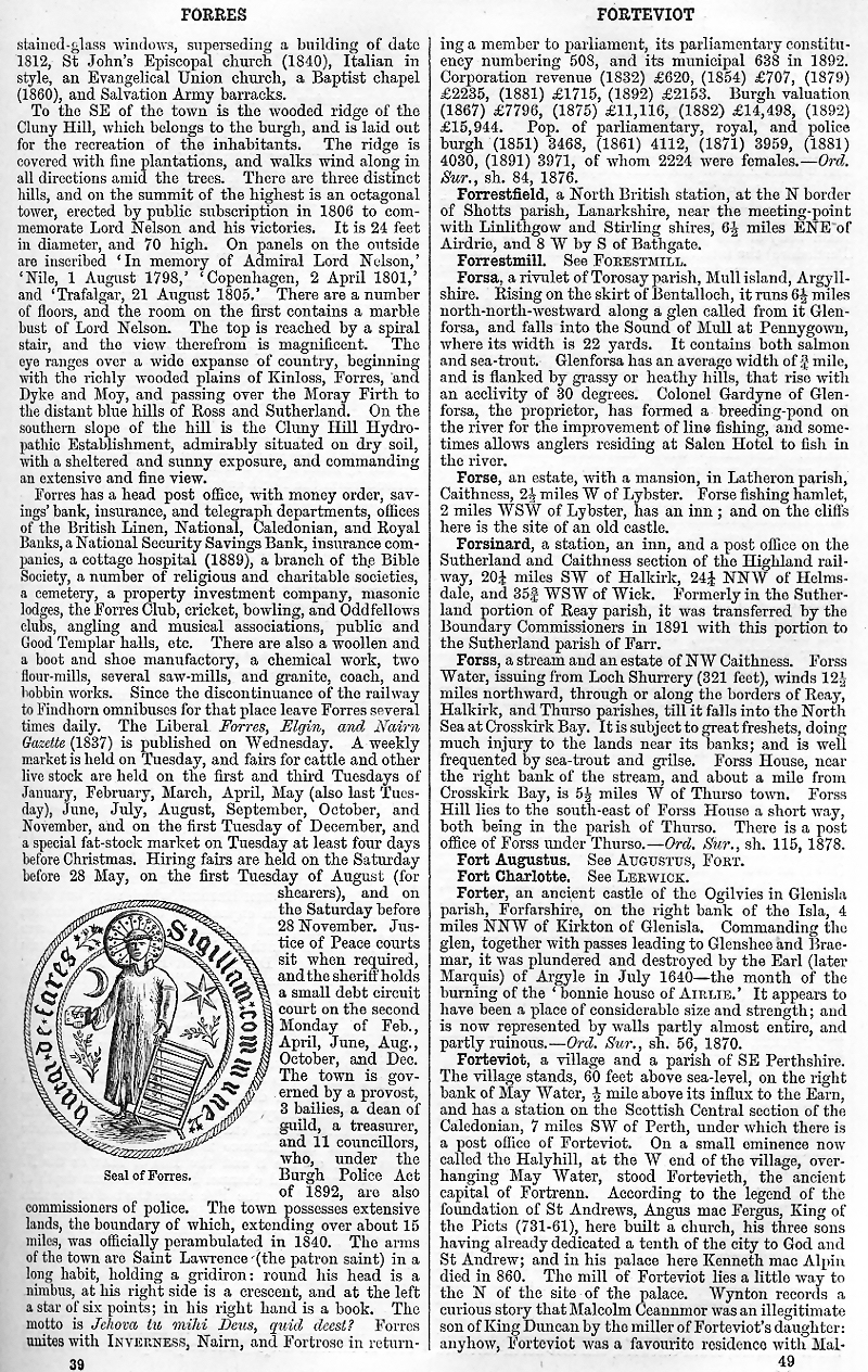 Forrestfield, Forrestmill, Forsa, Forse, Forsinard, Forss, For Augustus, Fort Charlotte, Forter, Forteviot