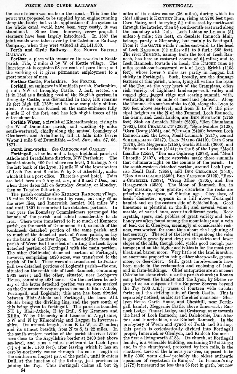 Forth and Clyde Railway, Forthar, Forthar Castle, Forthill, Forthie Water, Forth Iron-Works, Fortingall