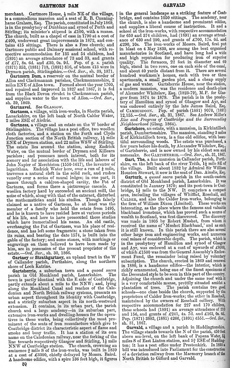 Gartmorn Dam, Gartnavel, Gartness, Gartney or Strathgartney, Gartsherrie, Gartshore, The Gart, Garturk, Garvald