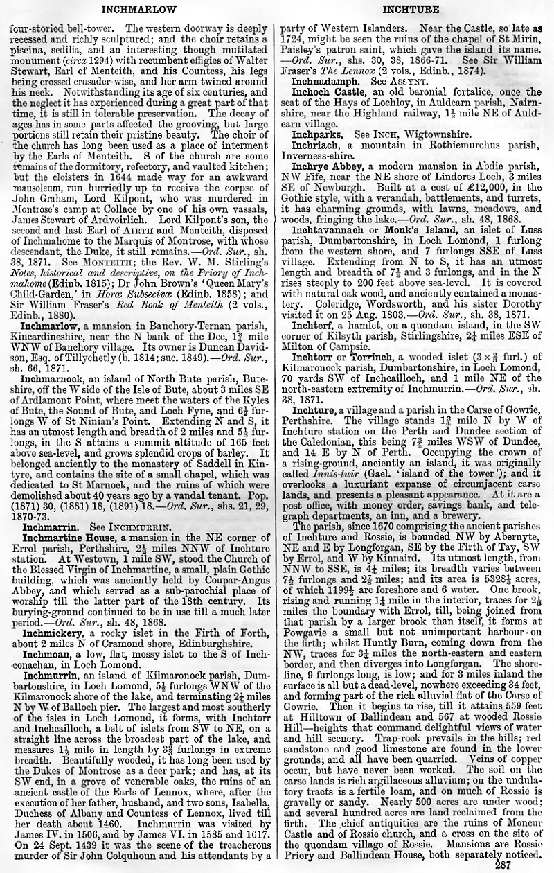 Inchmahome, Inchmarlow, Inchmarnock,