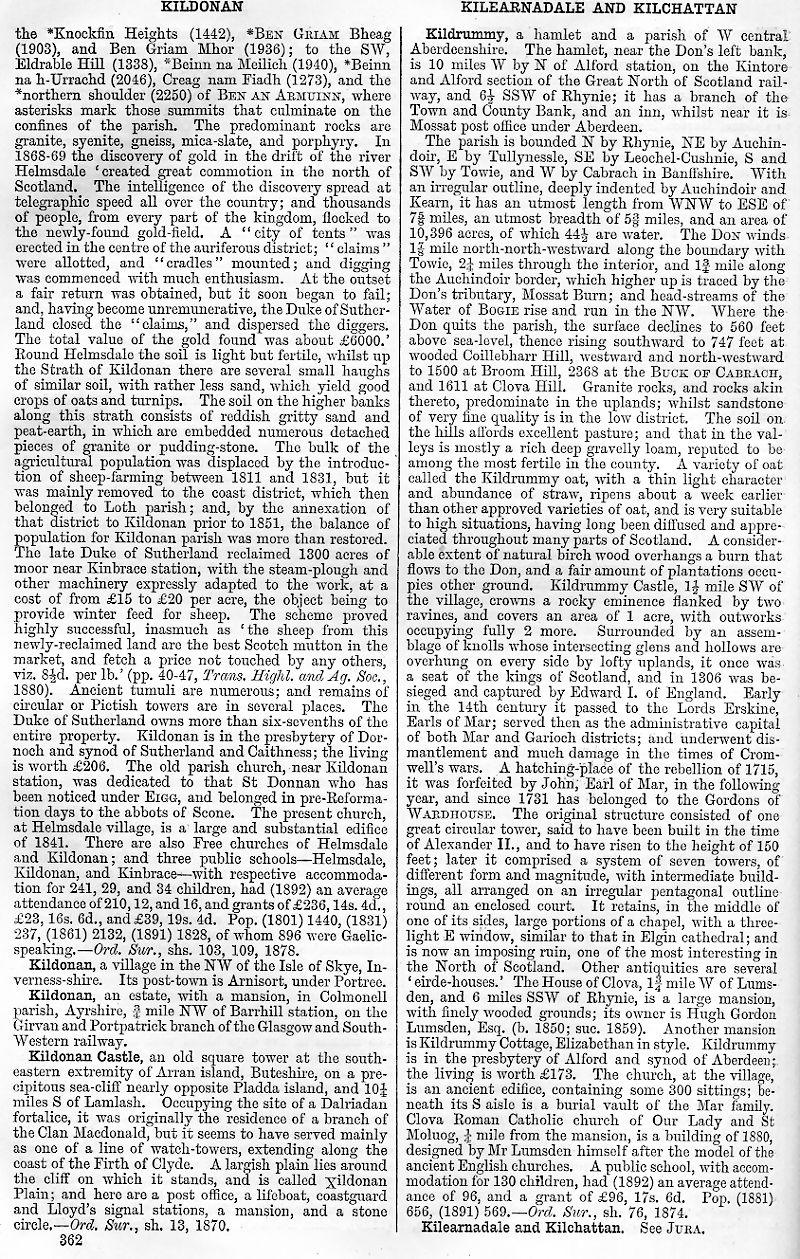 Kildonan, Kildonan Castle, Kildrummy, Kilearnadale and Kilchattan
