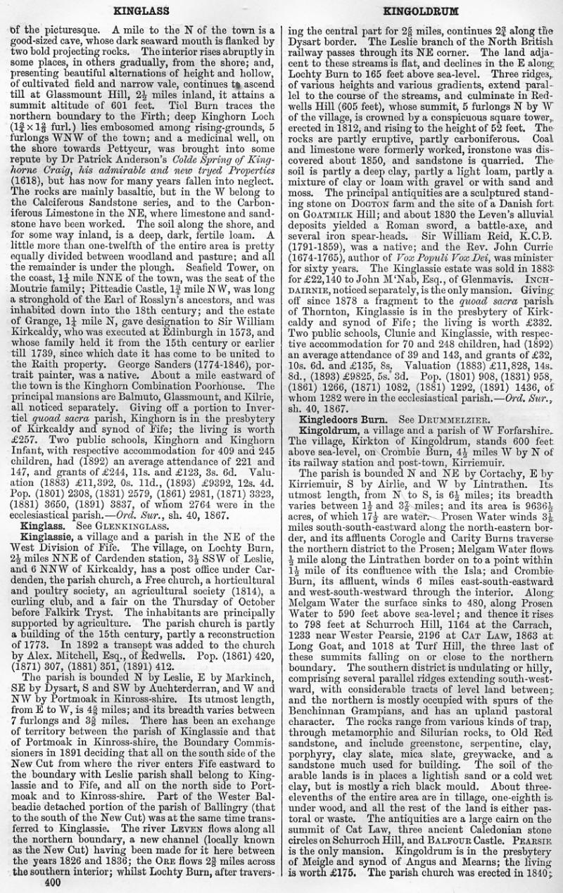 Kinglass, Kinglassie, Kingledoors Burn, Kingoldrum