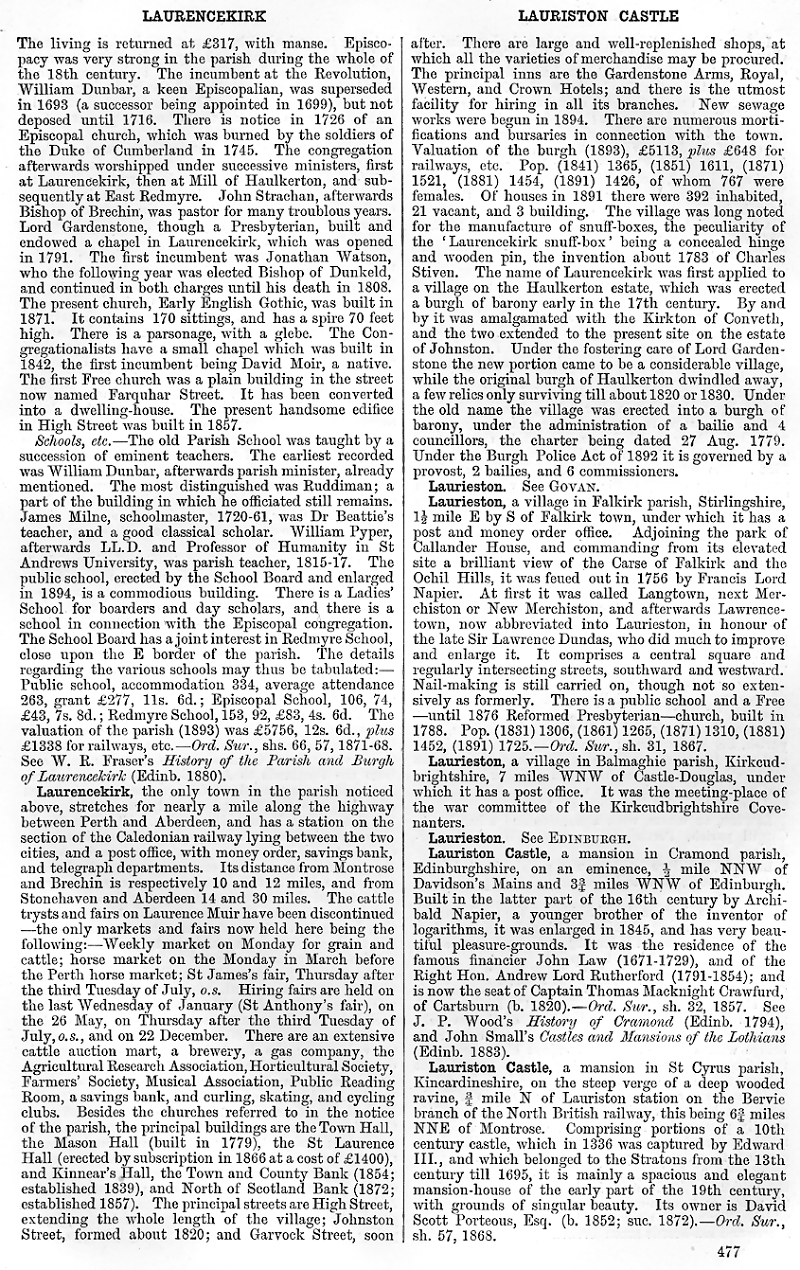 Laurencekirk, Laurieston, Lauriston Castle