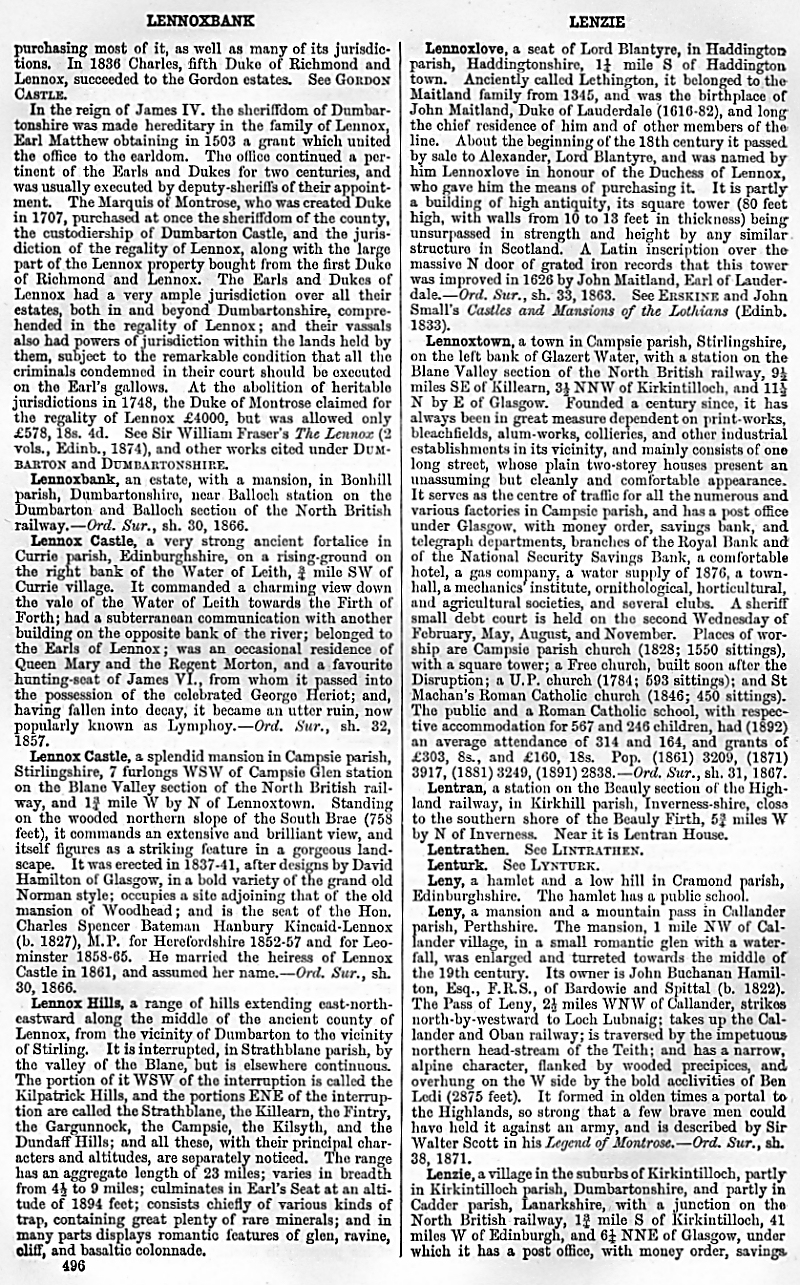 Lennoxbank, Lennox Castle, Lennox Hills, Lennoxlove, Lennoxtown, Lentran, Lentrathen, Lenturk, Leny, Lenzie