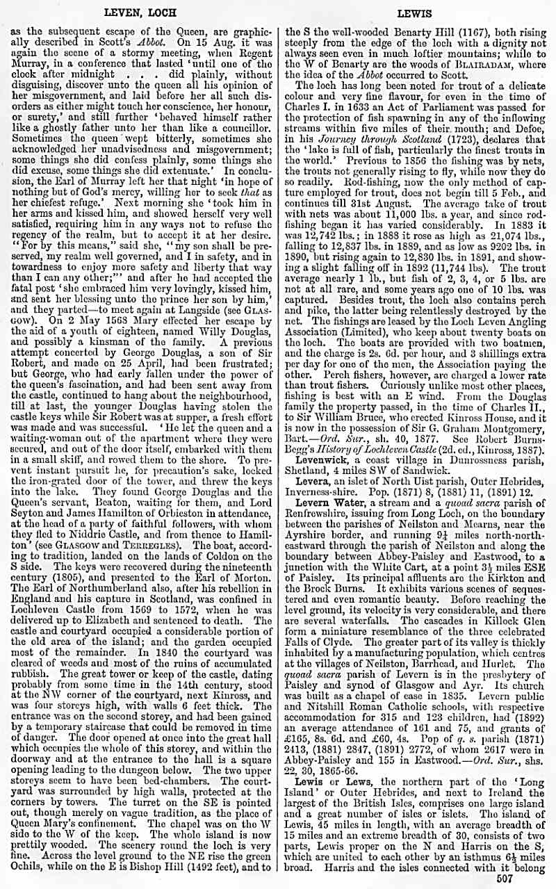 Loch Leven, Levenwick, Levera, Levern Water, Lewis or Lews