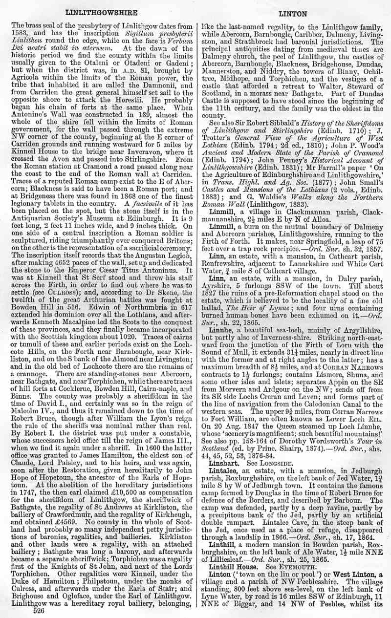or West Lothian, Linmill, Linn, Linnhe, Linshart, Lintalee, Linthill,