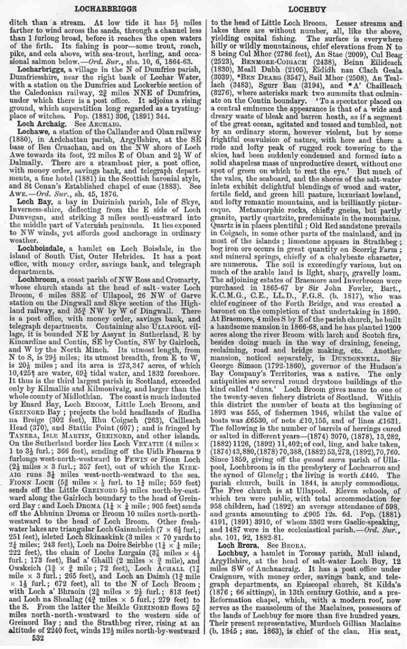 Locharbriggs, Loch Archaig, Lochawe, Loch Bay, Loch Boisdale, Lochbroom, Loch Brora, Lochbuy
