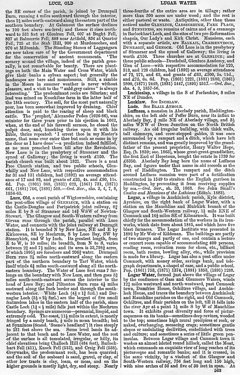Old Luce, Luckieslap, Lucklaw, Lude, Luffness, Lugar, Lugar Water