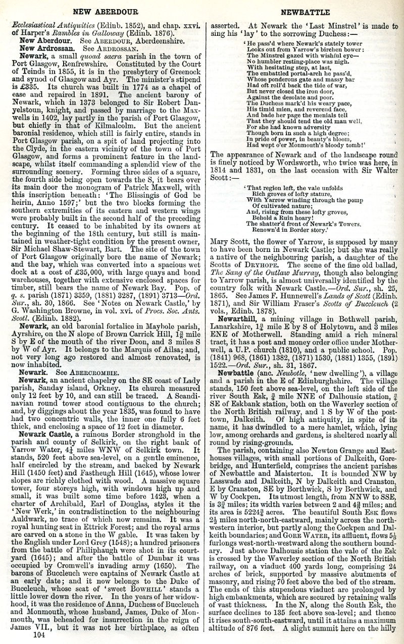New Aberdour, New Ardrossan, Newark, Newark Castle, Newarthill, Newbattle