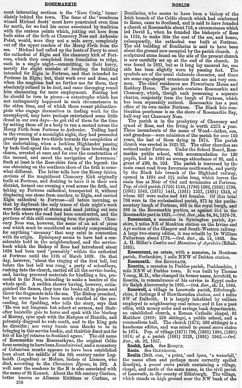 Rosemarkie, Rosemount, Roseneath, Rosetta, Rosewell, Loch Roshk, Rosie, Roslin