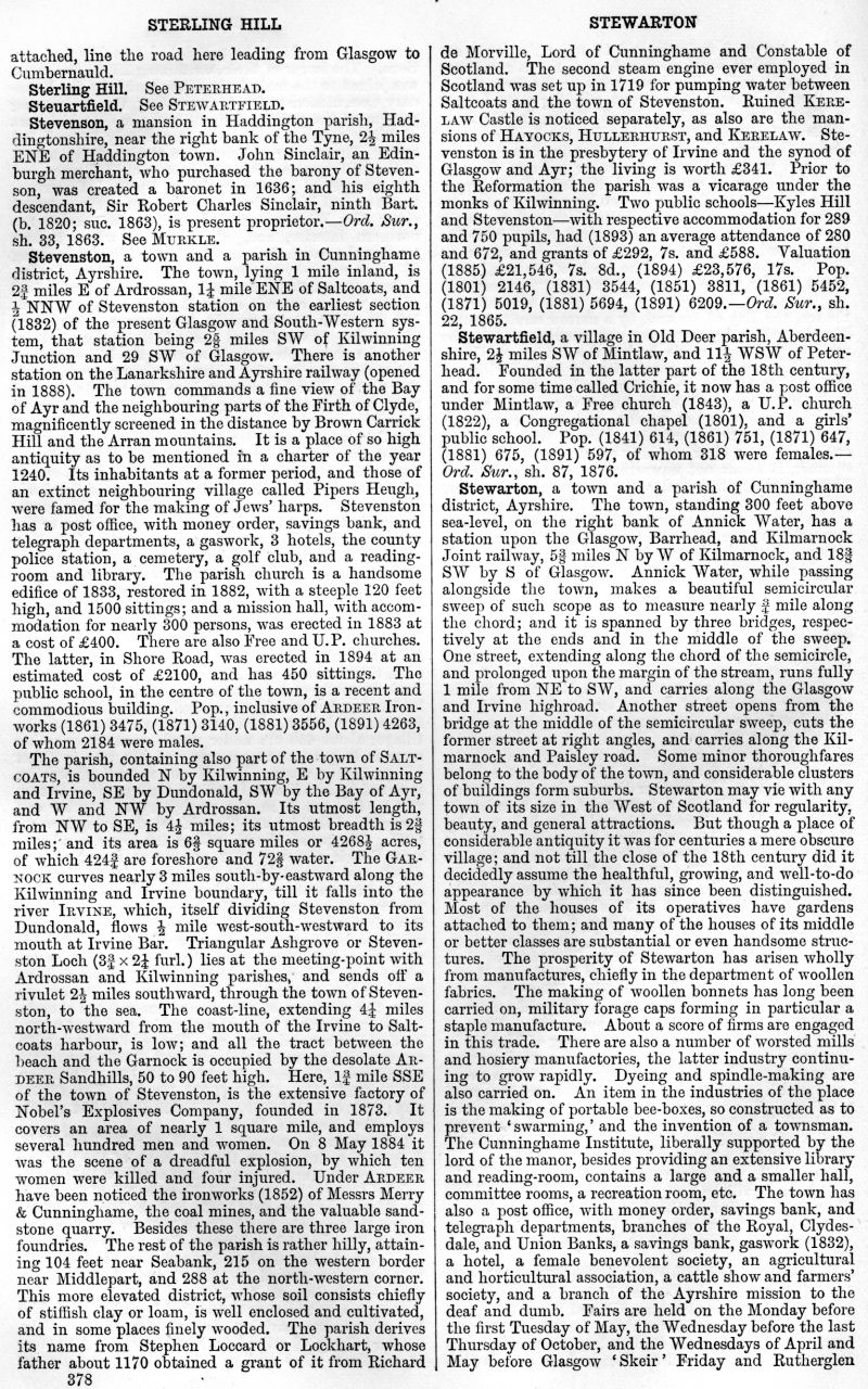 Sterling Hill, Steuartfield, Stevenson, Stevenston, Stewartfield, Stewarton