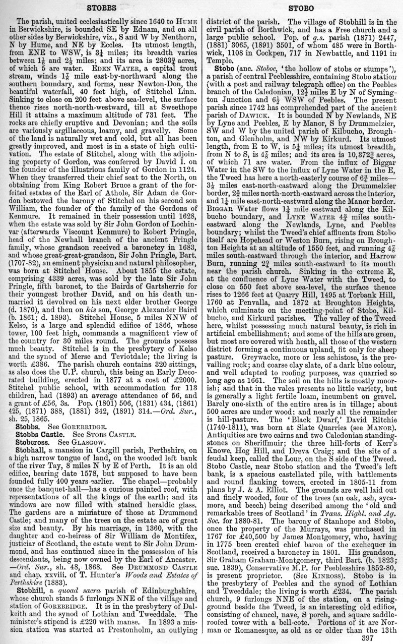 Stobbs, Stobbs Castle, Stobcross, Stobhall, Stobhill, Stobo,