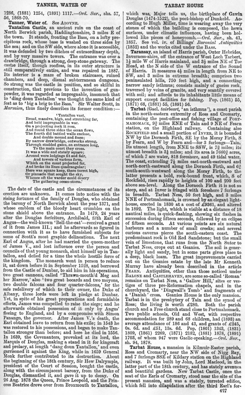 Water of Tanner, Tantallon Castle, Taransay, Tarbat, Tarbat House