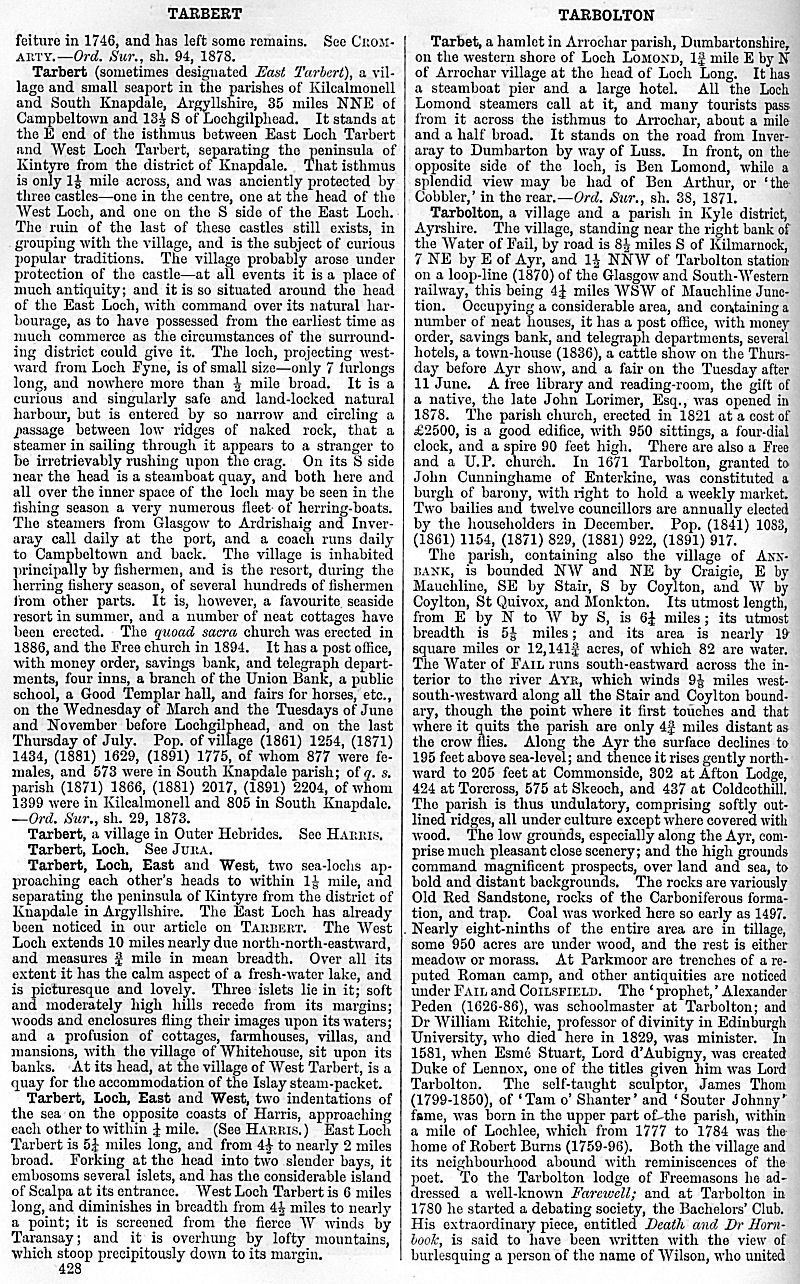 Tarbert, Loch Tarbert, Loch East and West Tarbert, Tarbet, Tarbolton