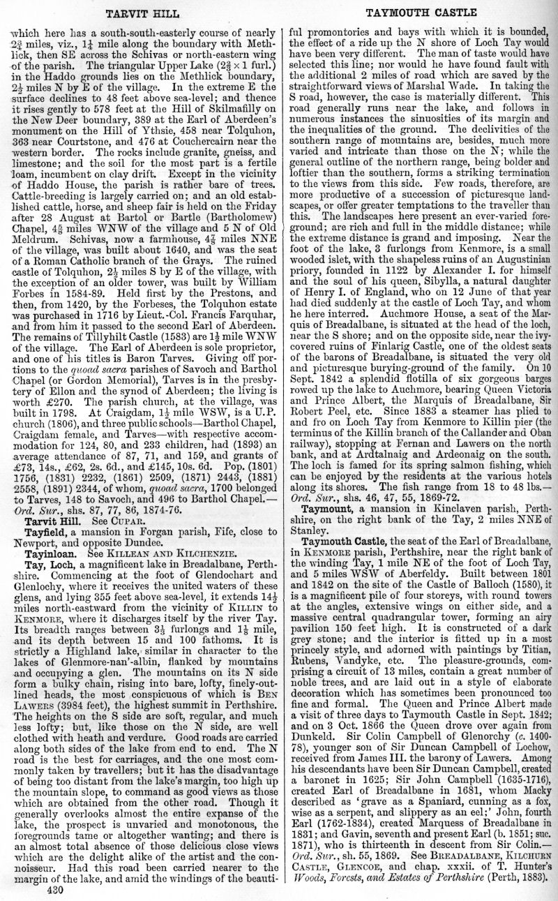 Tarvit Hill, Tayfield, Tayinloan, Loch Tay, Taymount, Taymouth Castle