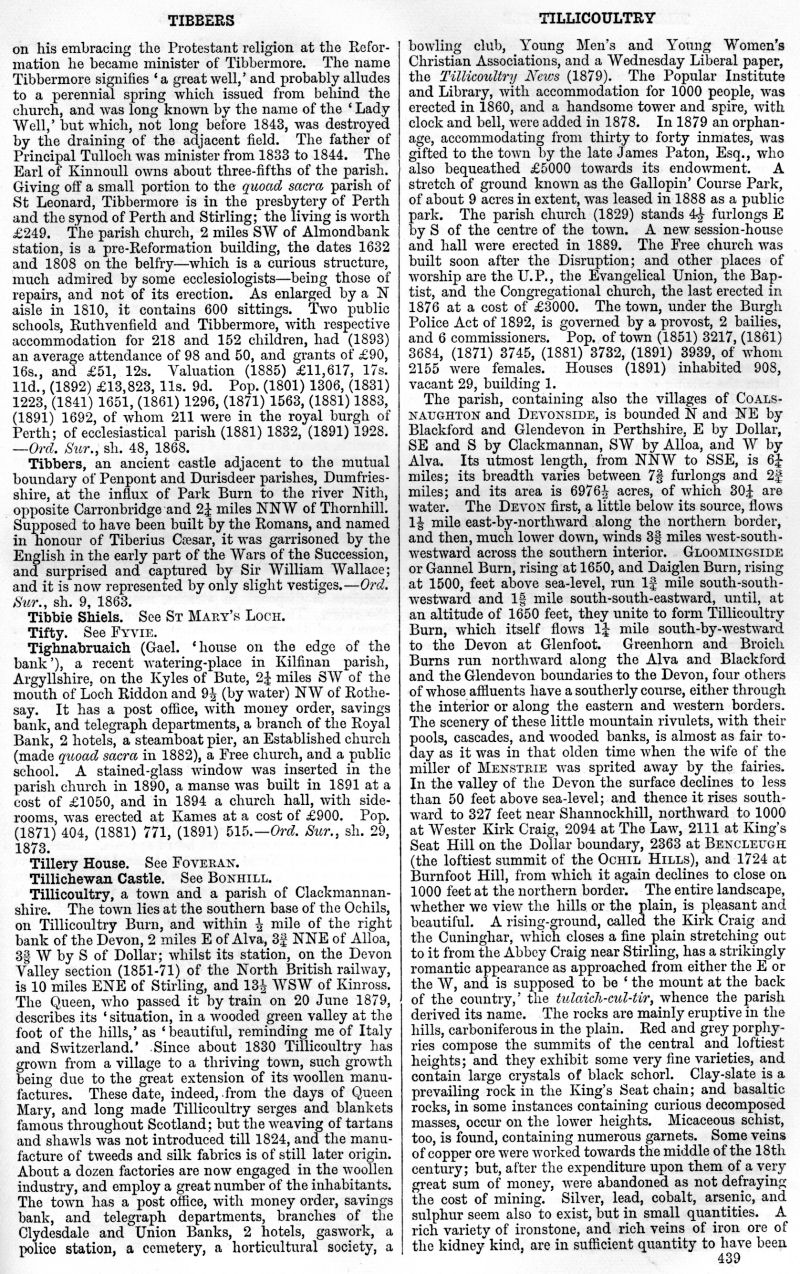 Tibbers, Tibbie Shiels, Tifty, Tighnabruaich, Tillery House, Tilliechewan Castle, Tillicoultry