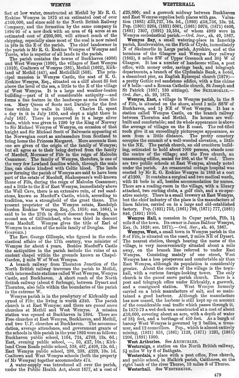 Wemyss, Wemyss Bay, East Wemyss, Wemyss Hall, West Wemyss, West Arthurlee, Westcraigs, Westerdale, Westerhall
