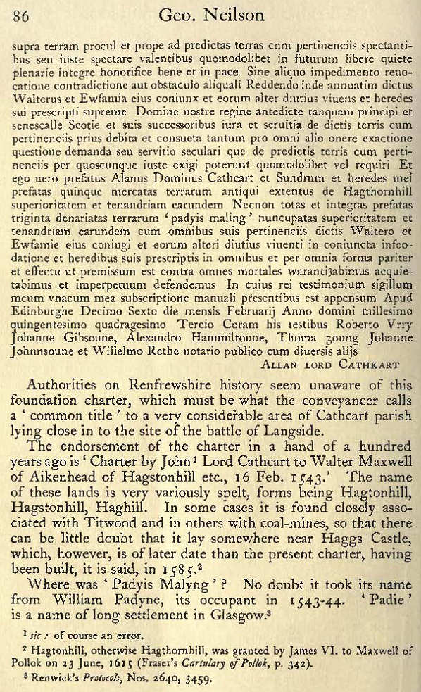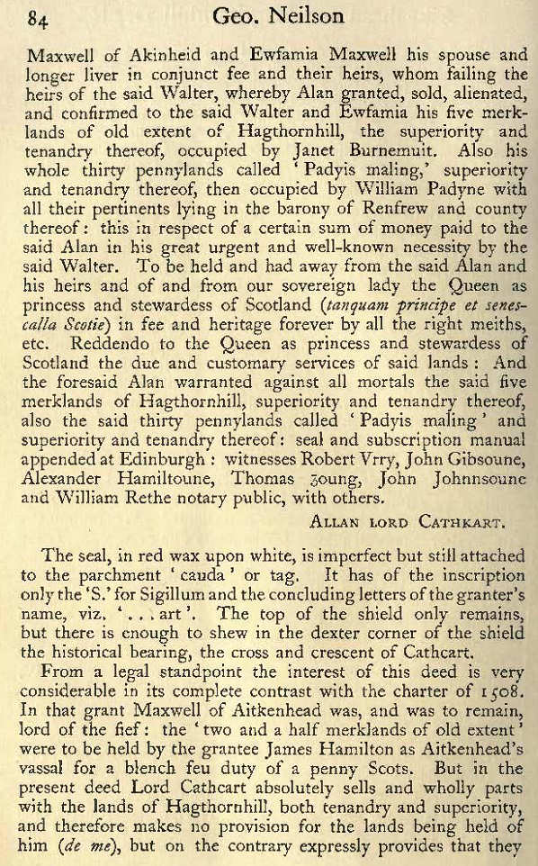 MR. WILLIAM GEMMILL, writer, Glasgow, has an unusually interesting little group of title deeds of lands on the south side of Glasgow, all originally part of the Aikenhead estate in the parish of Cathcart. Many reasons make these documents historical.
