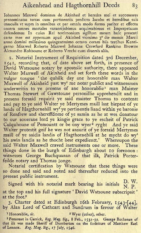 Three Aikenhead and Hagthornhill Deeds, 1508-1545
