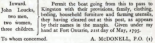 the period spoken of (the early settlement of Glengarry, 1783-6 had no