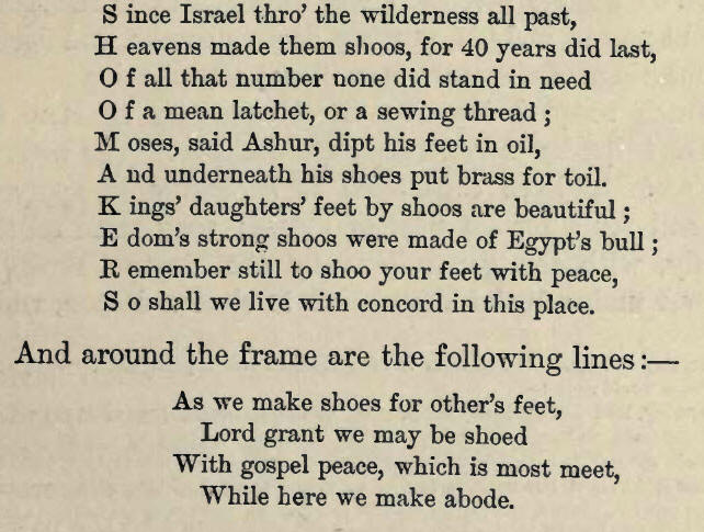 On the panel bearing the arms of the Shoemaker Trade is the following acrostic :—